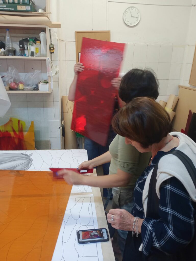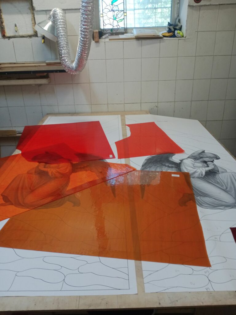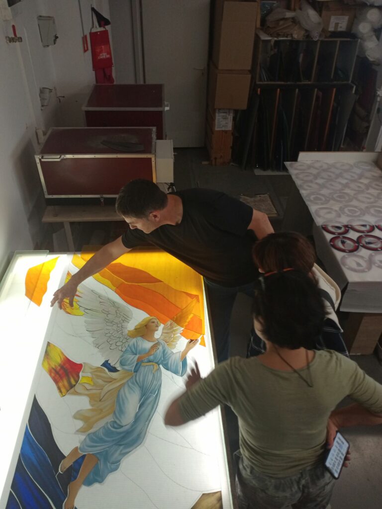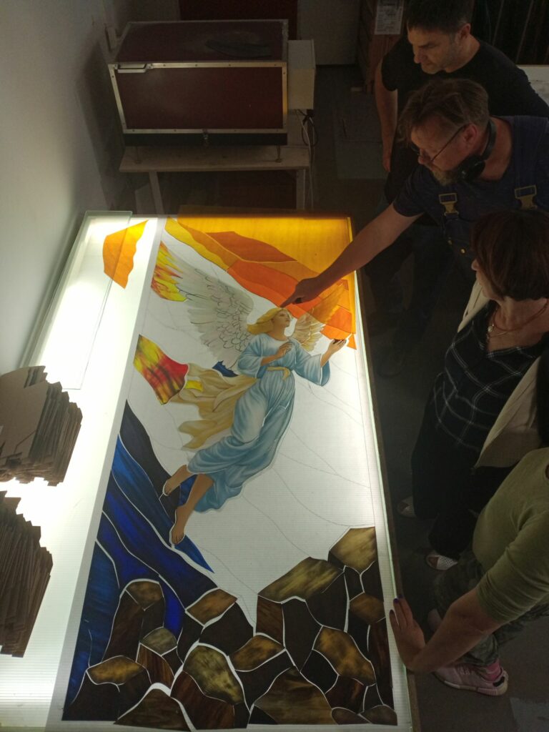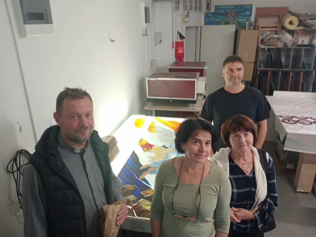 Pod opieką św. Stanisława Kostki wybraliśmy się z panią Jolantą Stolarczyk do pracowni witraży w Łodzi, by przyjrzeć się pracom związanym z wykonaniem witraży do kaplicy pogrzebowej.